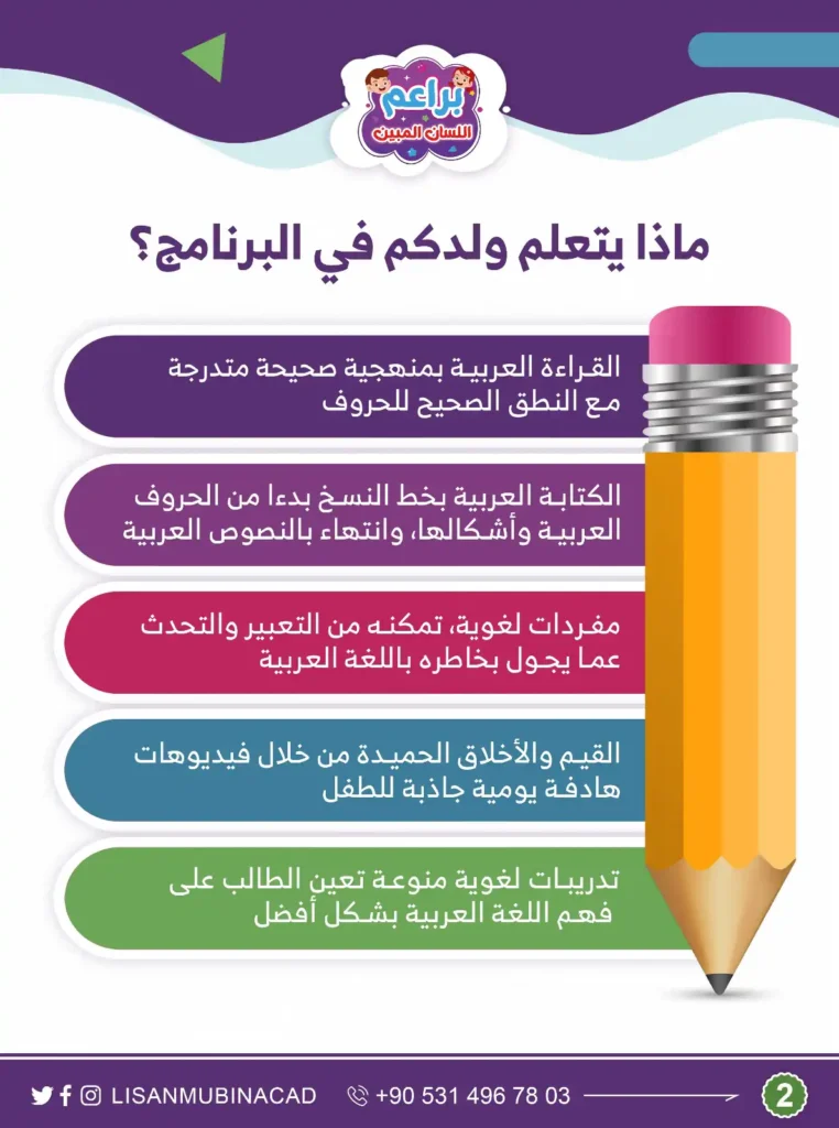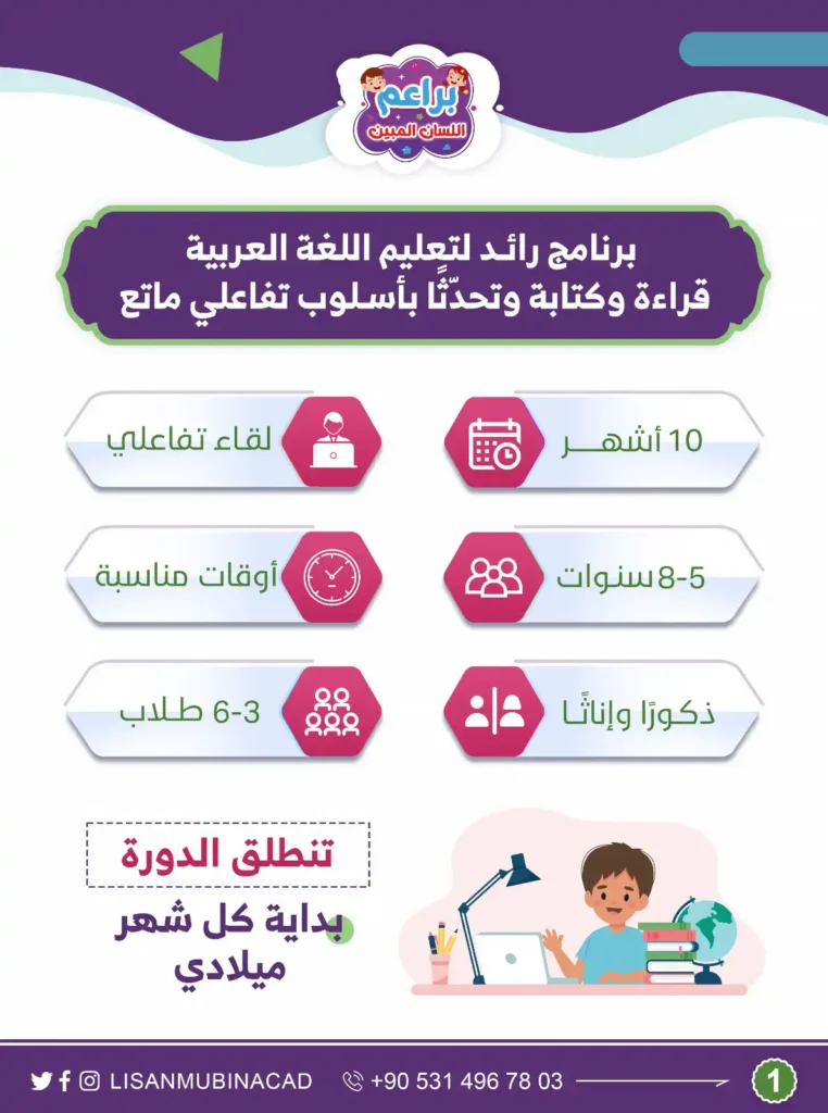 سيحصل الطالب على منهاج براعم اللسان المبين (الجزء الرشيدي المطور) مجانًا