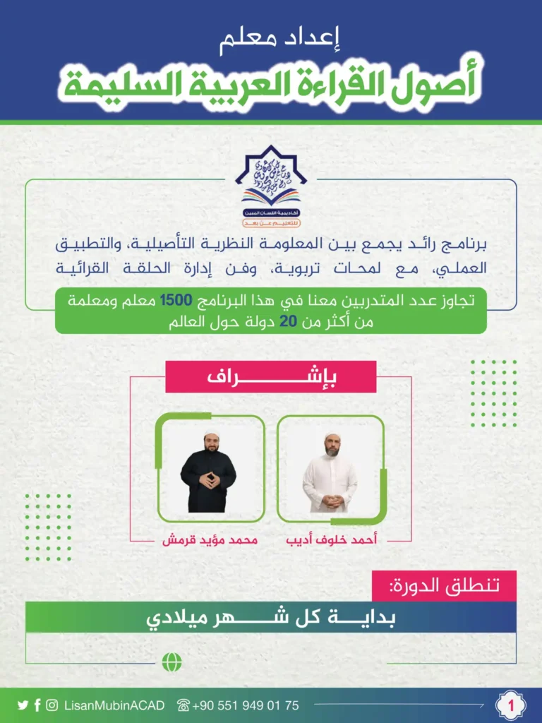 برنامج لتأهيل المعلمين وتدريبهم على المنهجية الصحيحة للقراءة العربية السليمة مصحوبًا بمهارات التعليم